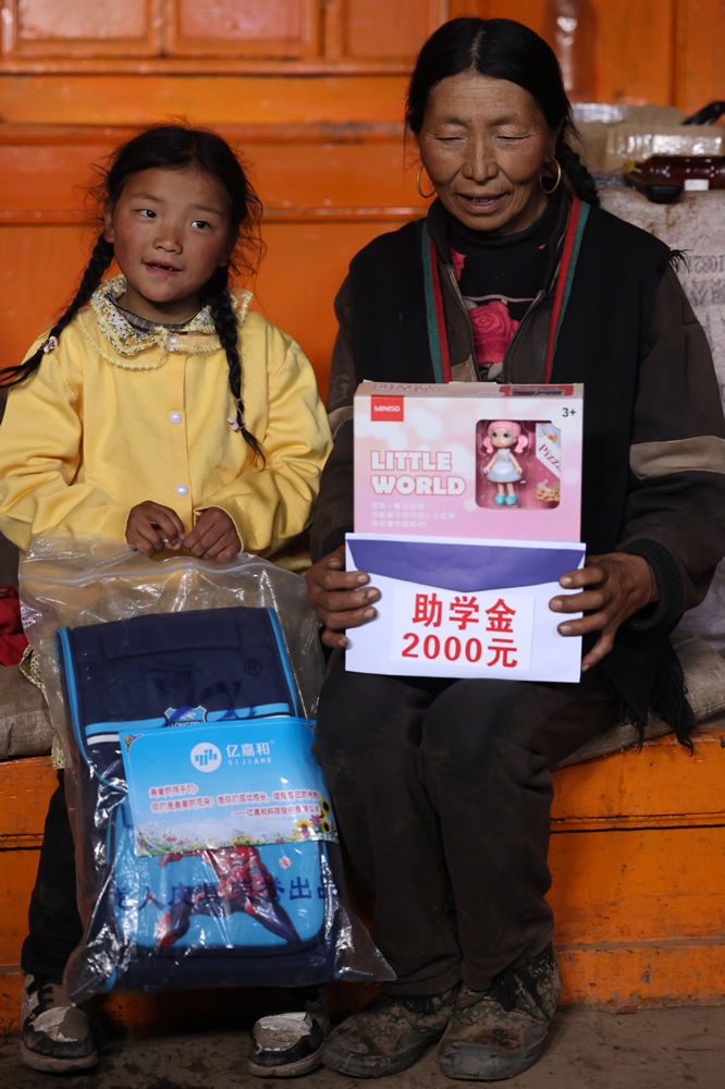 去冷姆措家家訪前,多兒鄉(xiāng)加才任書記說,冷姆措的爸爸前幾天因病去世。這讓我們的心情一下子低落起來,小姑娘正在寫作業(yè),看到我們來很禮貌的打招呼,到也看到他清澈的眼睛里多了一絲憂郁。